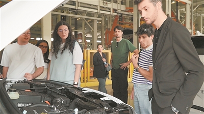 在西安期間,意大利青年還走訪了比亞迪西安工廠、西安華為研究所、隆基綠能公司等地,感受這座城市的科技創(chuàng)新力。比亞迪西安工廠生產(chǎn)線上,機械臂上下翻動,精準完成焊裝;華為展示了其最新發(fā)布的智能手機,強大的長焦計算攝影技術,吸引了眾多青年上手體驗;隆基綠能公司制造的光伏發(fā)電裝置所闡釋的環(huán)保理念,讓青年們產(chǎn)生了濃厚的興趣……