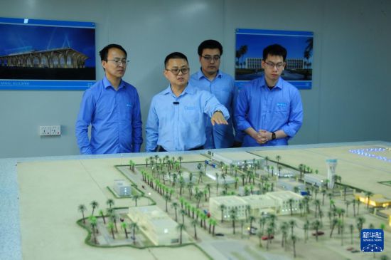 4月9日,中國(guó)建筑集團(tuán)有限公司項(xiàng)目團(tuán)隊(duì)在位于伊拉克濟(jì)加爾省的納西里耶國(guó)際機(jī)場(chǎng)項(xiàng)目部討論施工進(jìn)展。新華社記者 段敏夫 攝