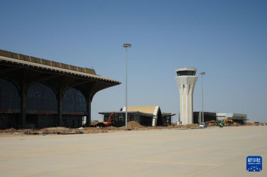 這是4月8日在伊拉克濟(jì)加爾省拍攝的由中國(guó)建筑集團(tuán)有限公司承建的納西里耶國(guó)際機(jī)場(chǎng)項(xiàng)目主航站樓及塔臺(tái)。新華社記者 段敏夫 攝