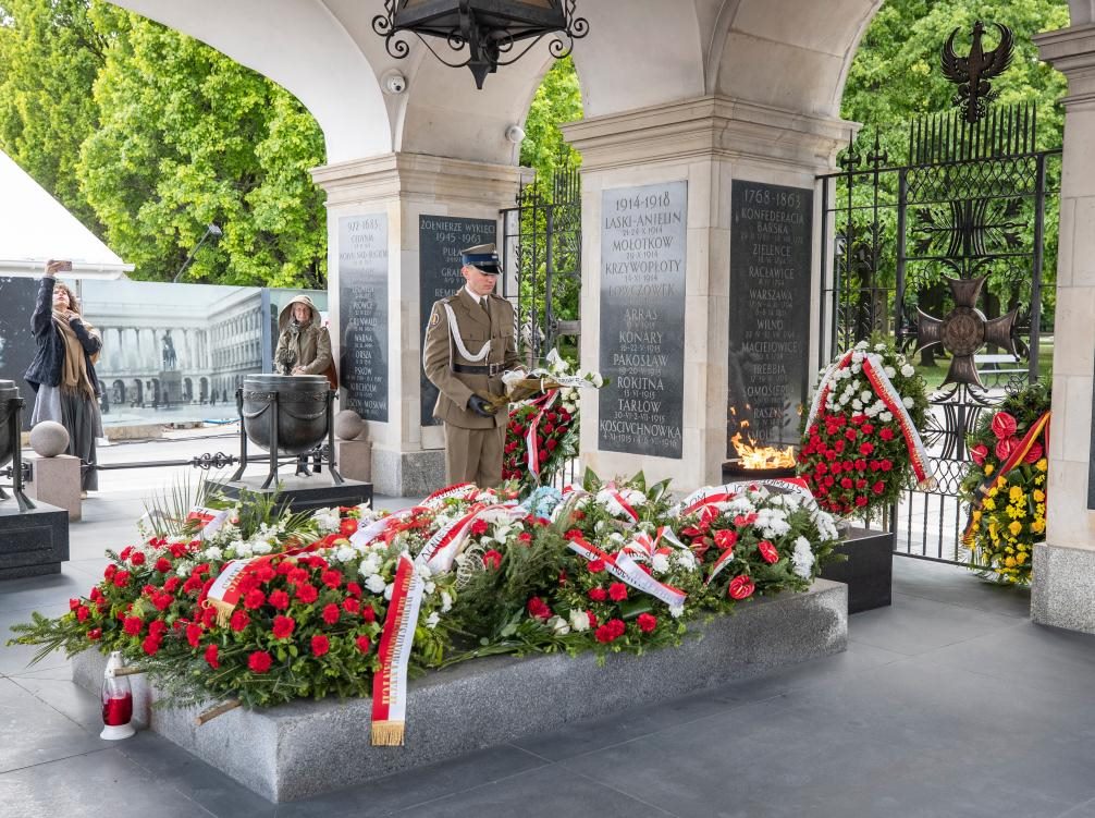 5月8日,人們?cè)诓ㄌm首都華沙的無(wú)名烈士墓參加紀(jì)念活動(dòng)。新華社記者 張帆 攝