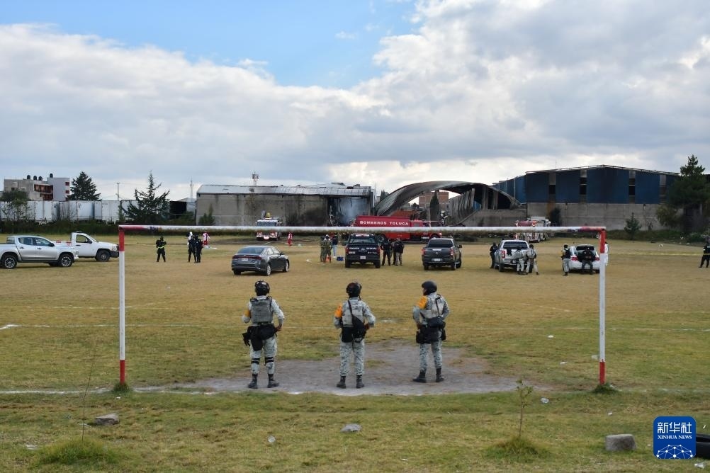 12月15日,在墨西哥中部墨西哥州托盧卡市,國(guó)民警衛(wèi)隊(duì)人員在事故現(xiàn)場(chǎng)警戒。新華社發(fā)(阿圖羅·埃爾南德斯攝)
