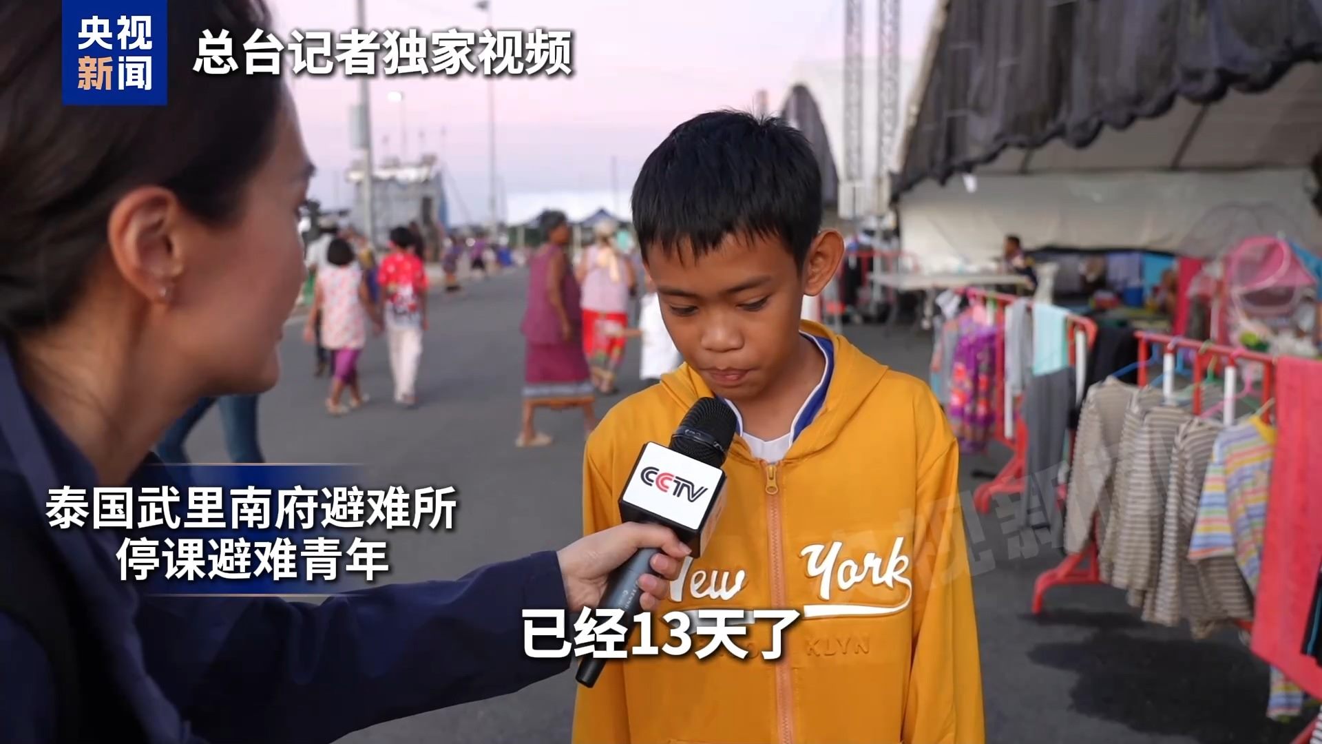 泰國武里南府避難青少年:已經(jīng)差不多11天12天了。因?yàn)樘﹪图砥艺g突然的沖突,我來到這里。