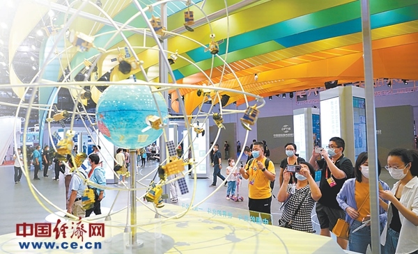 9月5日,觀眾在2020服貿會綜合展區(qū)觀看北斗衛(wèi)星模型。經濟日報-中國經濟網記者趙晶攝