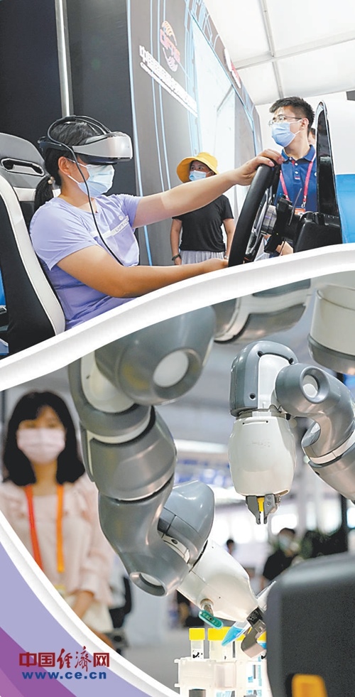 上圖:觀眾在2020服貿(mào)會(huì)5G通信服務(wù)展區(qū)體驗(yàn)5G高速網(wǎng)絡(luò)帶來(lái)的仿真駕駛。下圖:觀眾在2020服貿(mào)會(huì)服務(wù)機(jī)器人展區(qū)參觀醫(yī)用機(jī)器人。經(jīng)濟(jì)日?qǐng)?bào)-中國(guó)經(jīng)濟(jì)網(wǎng)記者趙晶攝