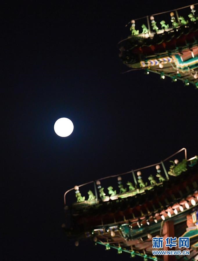 這是10月1日在北京正陽門城樓下拍攝的月亮。當(dāng)日是農(nóng)歷八月十五,傳統(tǒng)的中秋節(jié)與國(guó)慶節(jié)相遇,共迎圓月。新華社記者李賀攝