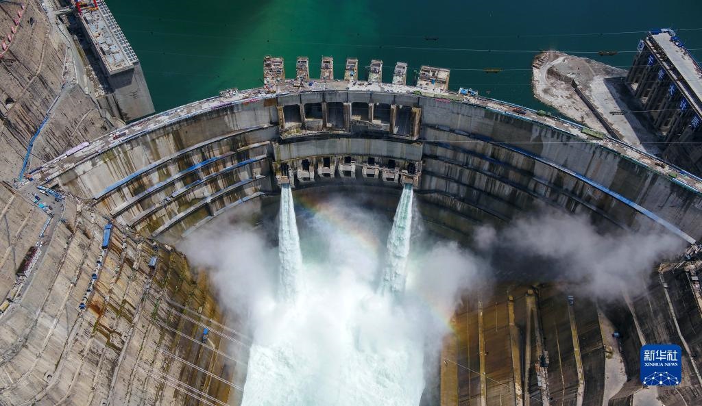 這是2021年6月10日拍攝的金沙江白鶴灘水電站。白鶴灘水電站是實施“西電東送”的國家重大工程,是當今世界在建規(guī)模最大、技術難度最高的水電工程(無人機照片)。新華社記者 胥冰潔 攝