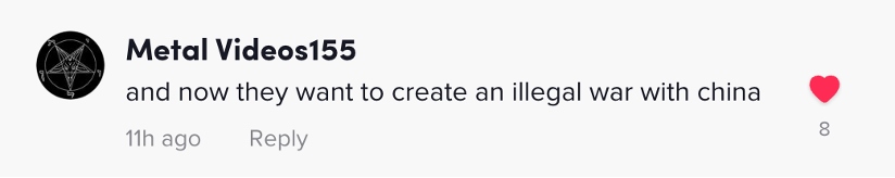 網(wǎng)友Metal Videos155:“不僅如此,現(xiàn)在美國還想要發(fā)動一場非法的對華戰(zhàn)爭。”