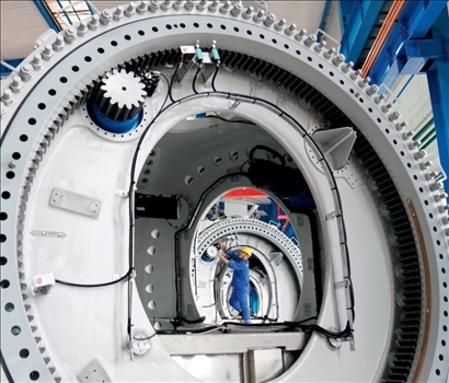 ▲ 在黑龍江省齊齊哈爾市中國(guó)一重集團(tuán)有限公司風(fēng)電裝備生產(chǎn)制造廠生產(chǎn)車間,工人進(jìn)行生產(chǎn)作業(yè)(2021年7月1日攝) 王建威攝
