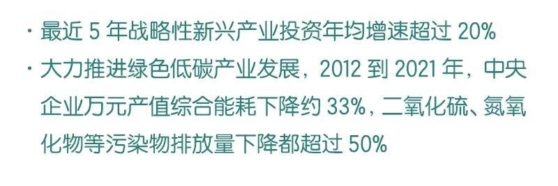 ◆ 截至目前,中央企業(yè)在涉及國(guó)家安全和國(guó)計(jì)民生等領(lǐng)域的營(yíng)業(yè)收入占比超過(guò)70%,最近5年戰(zhàn)略性新興產(chǎn)業(yè)投資年均增速超過(guò)20%。