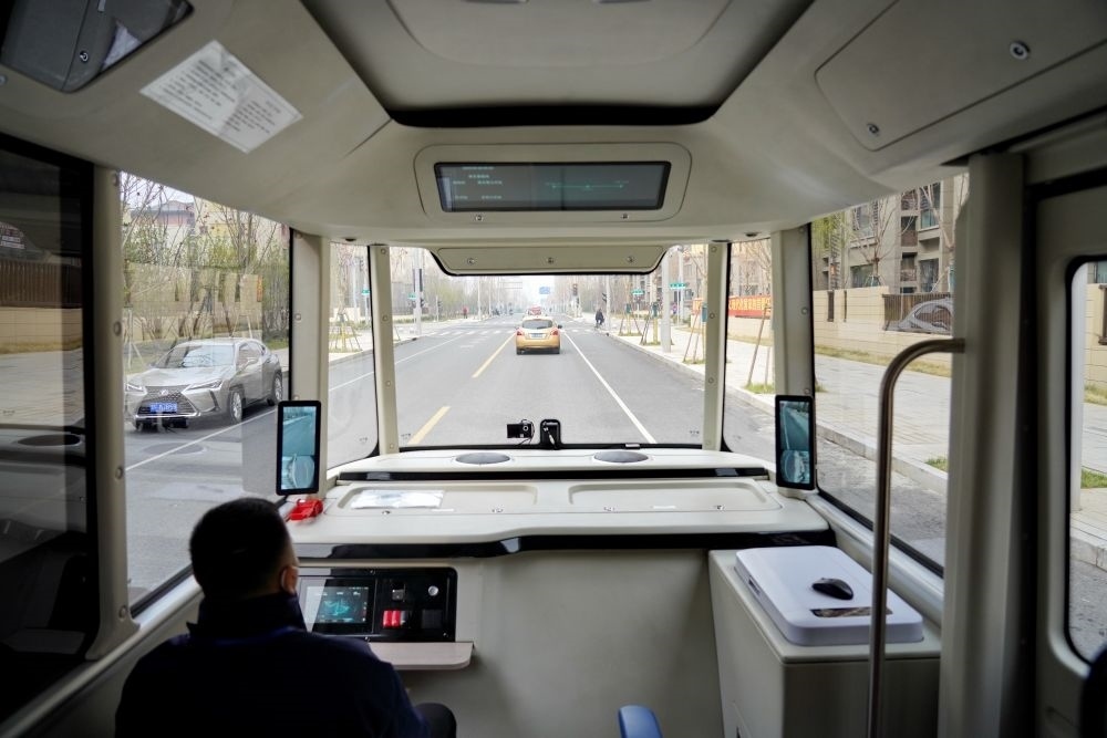 3月20日,智能網(wǎng)聯(lián)巴士901線測(cè)試車(chē)在河北雄安新區(qū)容東片區(qū)道路上行駛。