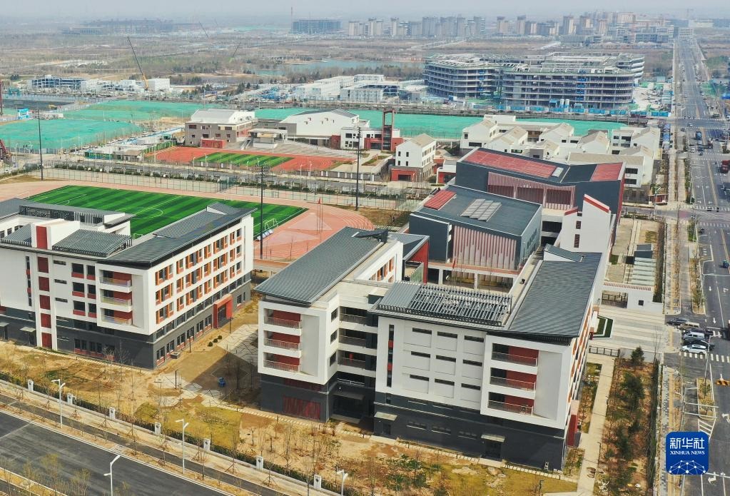 北京第四中學(xué)雄安校區(qū)和史家胡同小學(xué)雄安校區(qū)(2023年3月26日拍攝,無人機照片)。新華社記者 楊世堯 攝