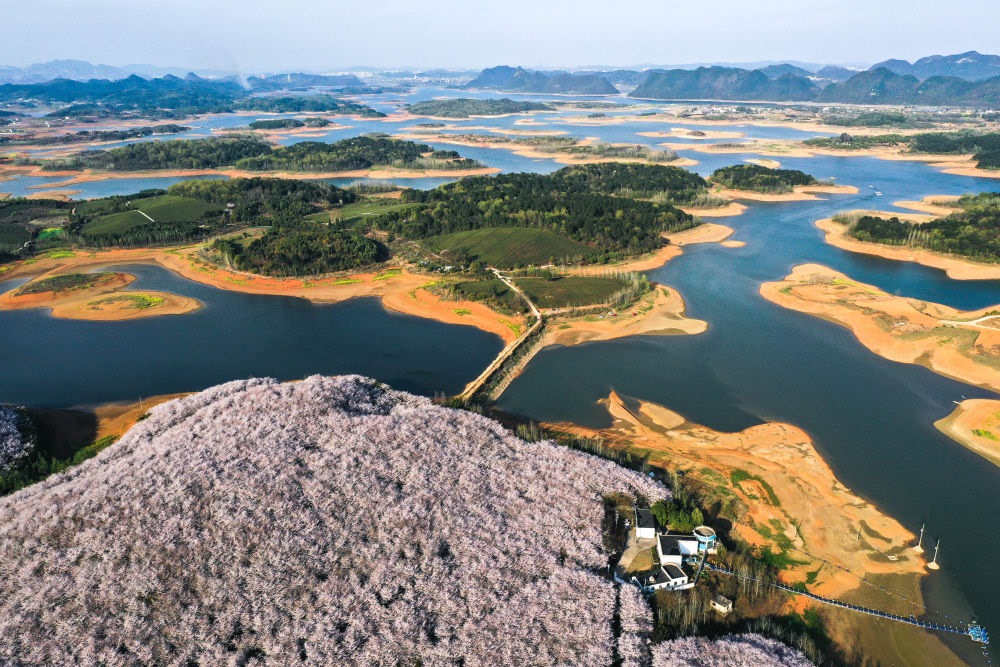 貴州省貴安新區(qū)櫻花園(無人機(jī)照片,2022年3月17日攝)。新華社記者 歐東衢 攝