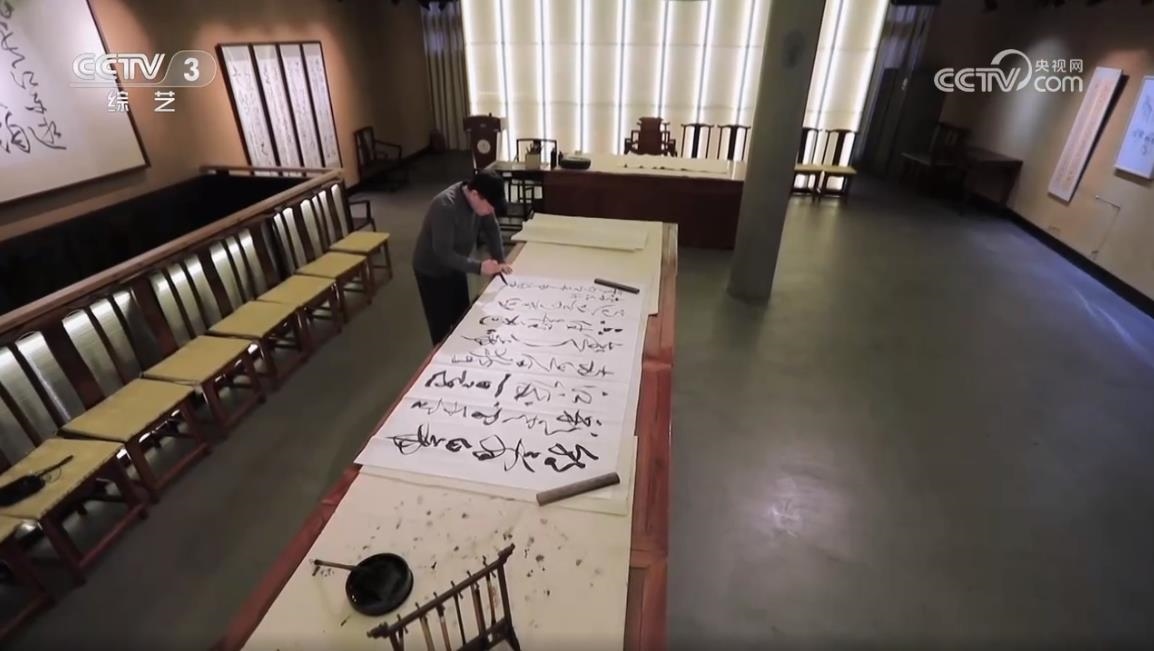中國書法家協(xié)會草書專業(yè)委員會副主任、上海市書法家協(xié)會主席 丁申陽:武打的場面,他(導演)說后面一堵墻,你可以用草書來書寫,掛在后面作背景。他說這個草書跟武術其實有相同點,都是動態(tài)的美,也有左右避讓的關系,長短的協(xié)調的關系,還有重輕的關系,矛盾平衡之間尋找一個點,這個點就是協(xié)調,協(xié)調就是美的。