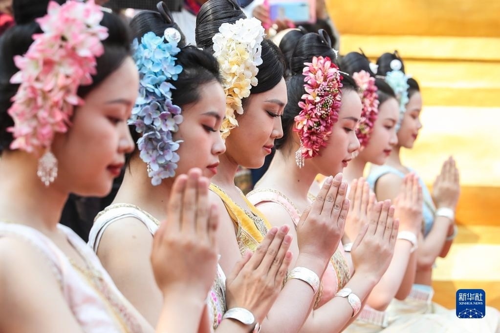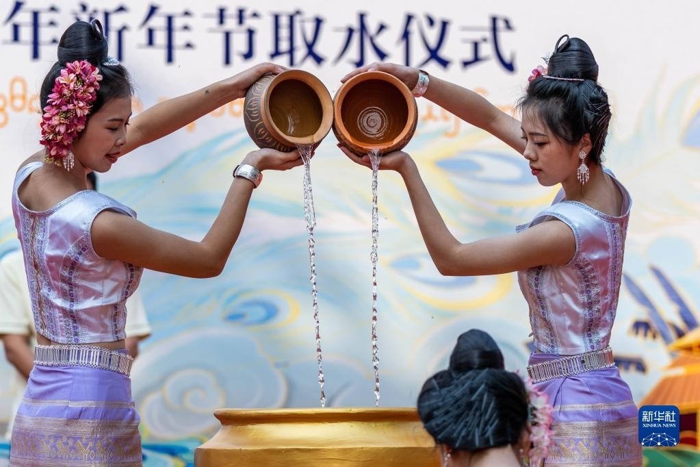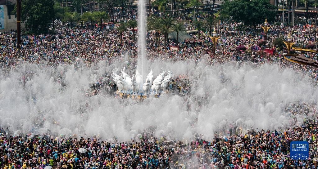 當(dāng)日,云南省西雙版納傣族自治州舉行傣歷新年取水儀式及潑水狂歡,數(shù)萬名各族群眾和游客在景洪市用相互潑水的方式互送祝福、傳遞歡樂。