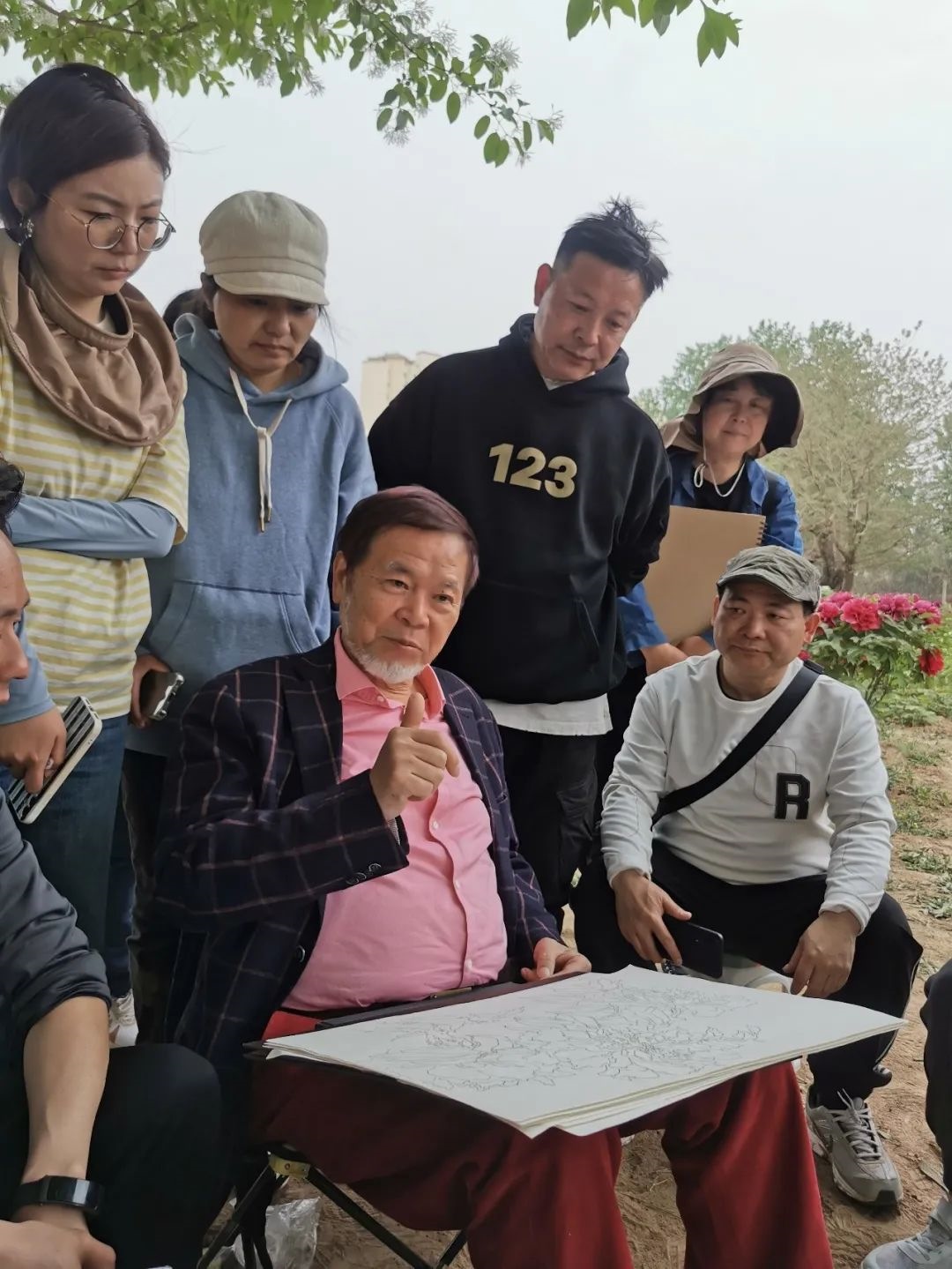自1975年29歲的何水法先生以赤子之心,首次只身赴菏澤,48年來,為畫牡丹,寫其牡丹之真情、寫其牡丹之風(fēng)骨,寫其國花繁榮富強(qiáng)之真諦。用何水法先生世紀(jì)之初所言:“寫生是畫家與生活的對(duì)話”。藝術(shù)家也要不斷地站在時(shí)代的前列,站在歷史的高位,不斷思索,不斷地刷新繪畫語言。要緊隨時(shí)代發(fā)展的需要,不斷突破新題材、突破新意境。因此他今年又親率眾學(xué)生第十五次來菏澤深入考察,發(fā)揮示范引領(lǐng)作用,體驗(yàn)生活、開闊思維,為謳歌人民、謳歌新時(shí)代,進(jìn)行新的藝術(shù)創(chuàng)造。