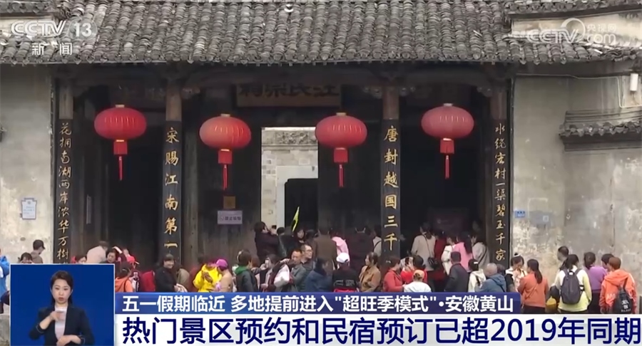 目前西遞、宏村等熱門景區(qū)內(nèi)民宿預(yù)訂量已達(dá)75%,景區(qū)外民宿預(yù)訂約65%,景區(qū)預(yù)約人數(shù)和民宿預(yù)訂量均已超過2019年同期水平。