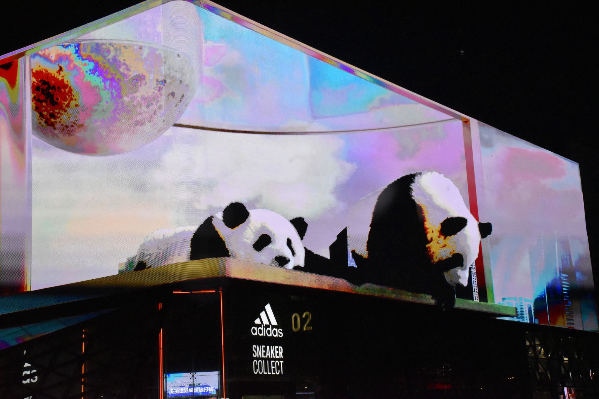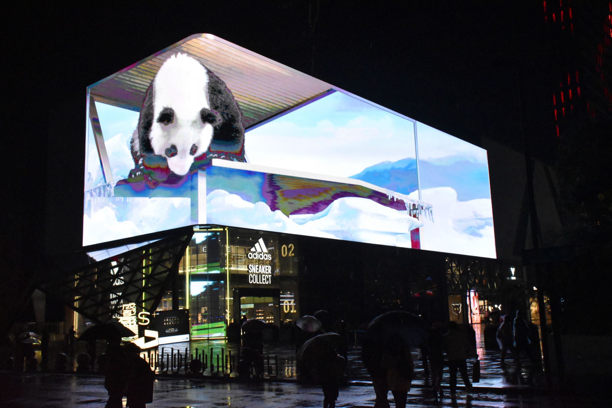 2023年4月24日,成都,太古里步行街的裸眼3D屏上,大熊貓萌態(tài)十足。視覺中國