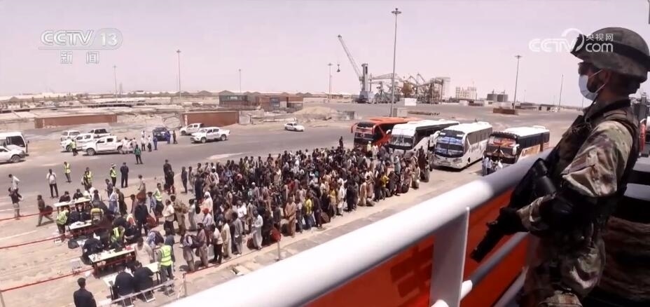 靠泊蘇丹港后,微山湖艦快速放下舷梯,官兵立即登上碼頭開展接收撤離人員準(zhǔn)備工作。隨后搭載撤離人員的大巴車隊抵達碼頭,人員登記、安檢、登艦等工作緊張有序展開。