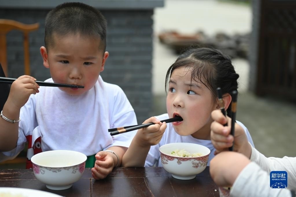 5月4日,小朋友品嘗“野米飯”。