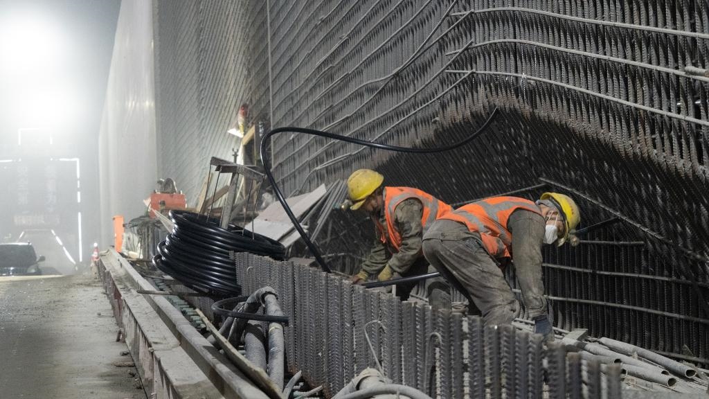 建設者奮戰(zhàn)在雙江口水電站施工一線。新華社記者楊進 攝