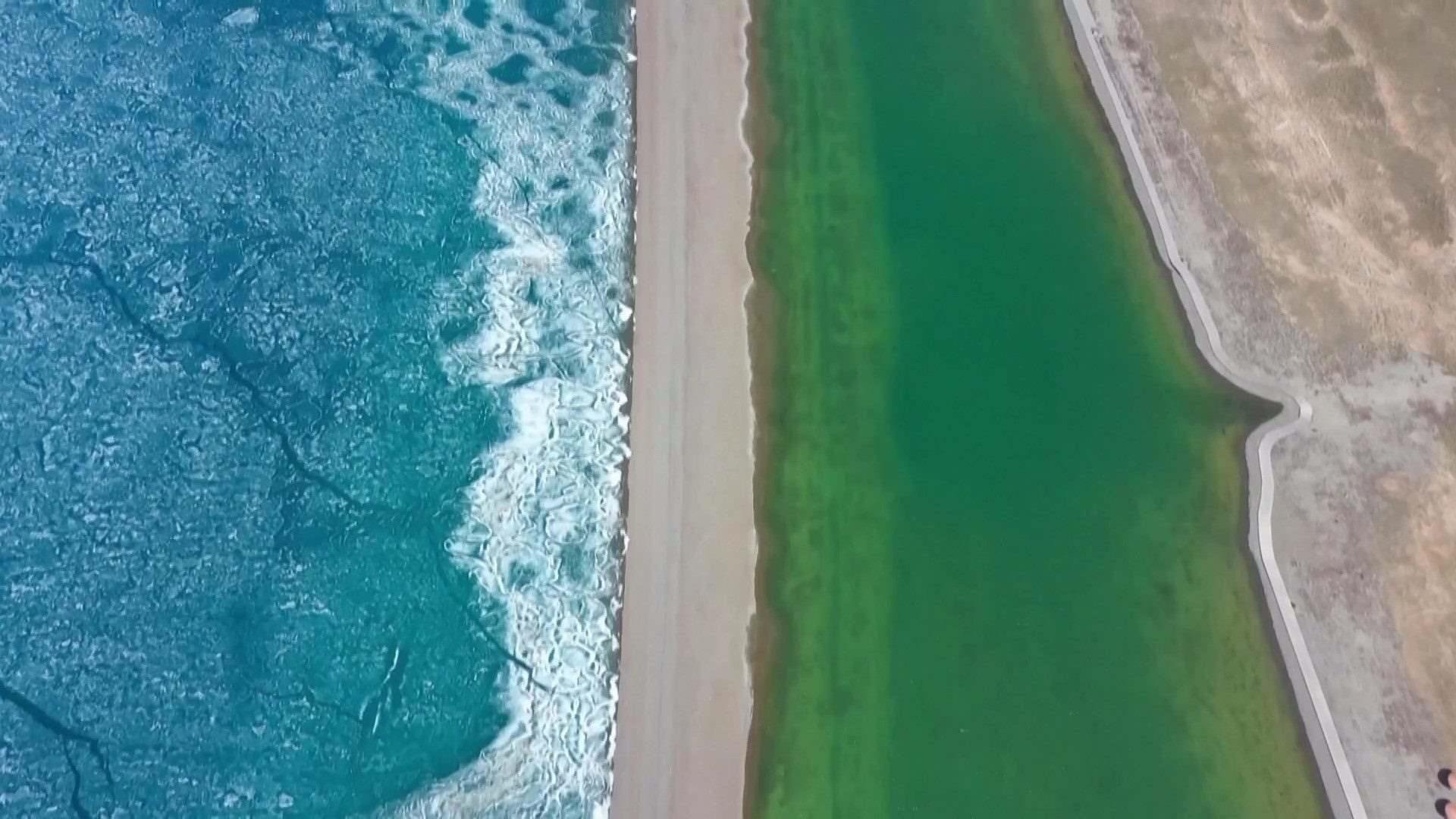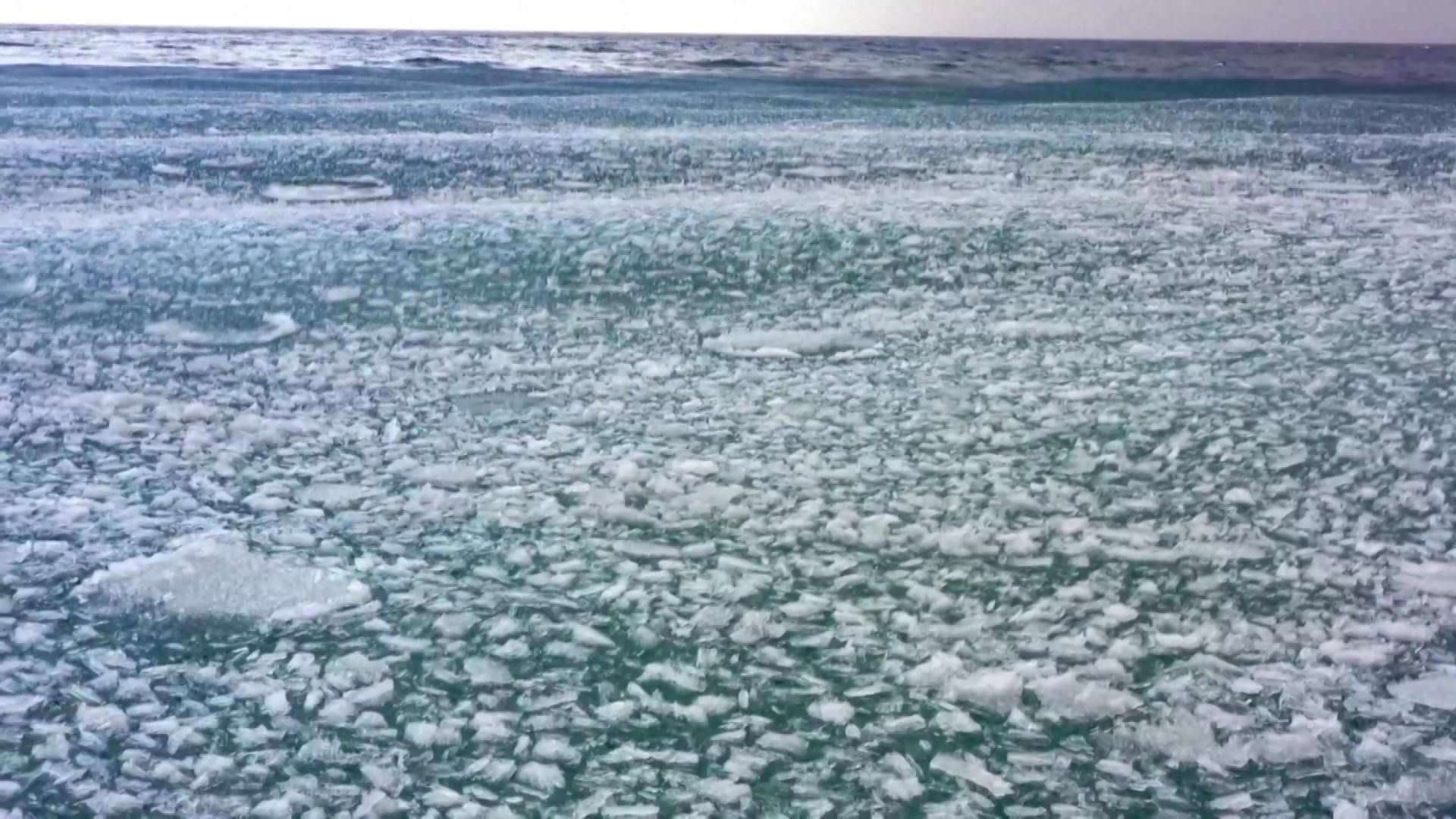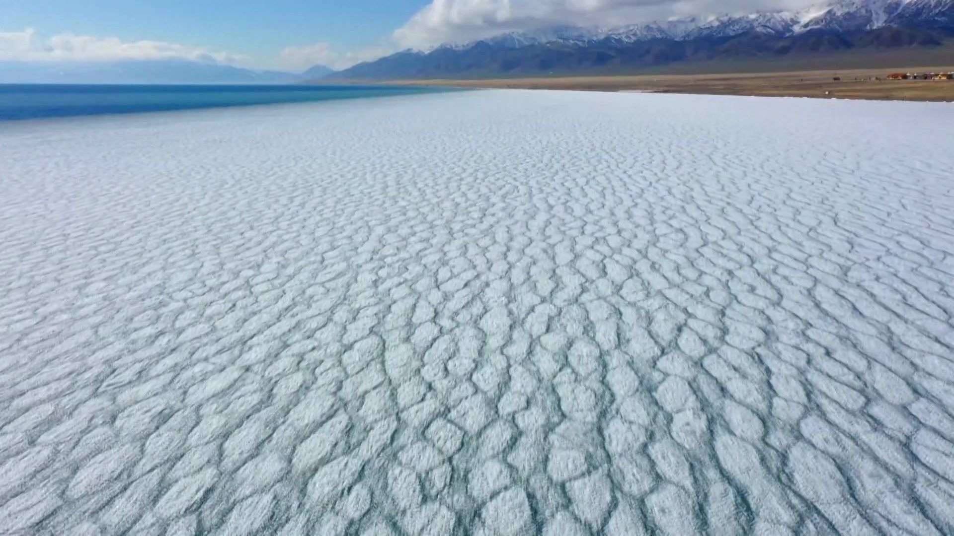 新疆賽里木湖冰層碎裂現(xiàn)“冰推”景觀(guān)