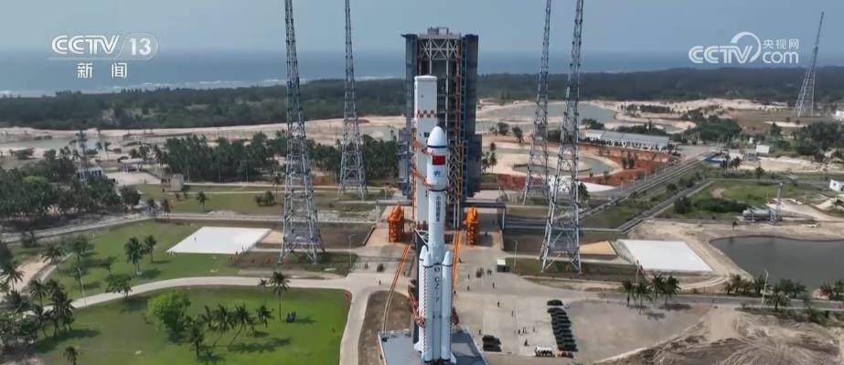 5月7日早上8時許,伴隨著指令聲,天舟六號貨運飛船和長征七號遙七運載火箭組合體在海南文昌航天發(fā)射場開始進行垂直轉(zhuǎn)運。在活動發(fā)射平臺的托舉下,長征七號遙七運載火箭駛出了總裝測試廠房。