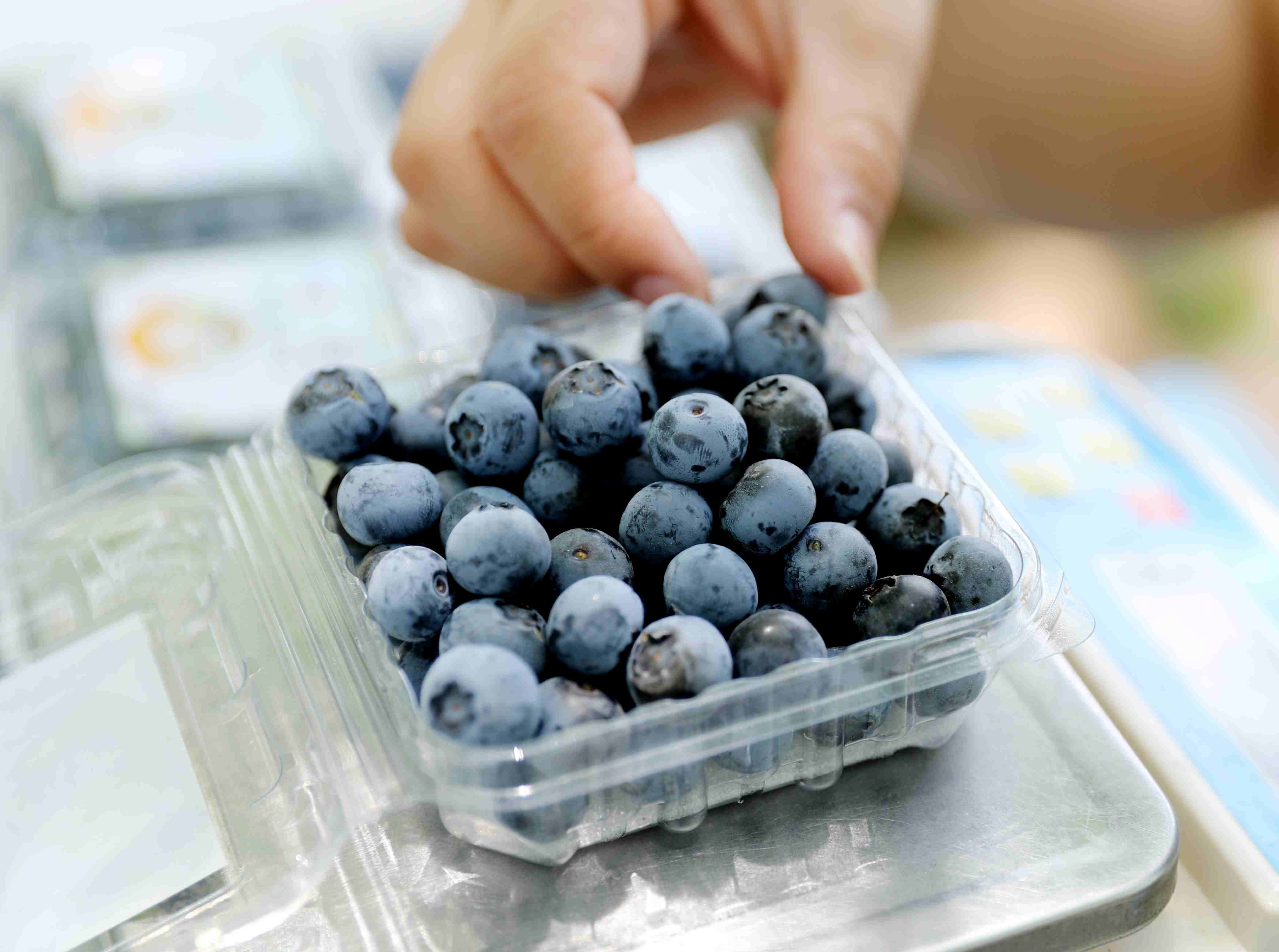 5月7日,青島西海岸新區(qū)寶山鎮(zhèn)一種植戶在分裝藍(lán)莓。