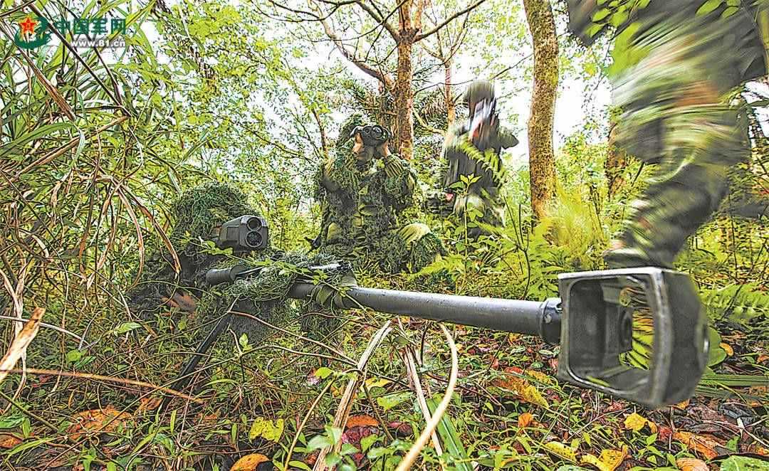 引擎轟鳴,鐵翼飛旋。直升機到達預定空域后,偵察隊員接續(xù)索降,落地后迅速組成戰(zhàn)術(shù)隊形進行滲透。叢林深處,狙擊組快速占領(lǐng)狙擊陣位,警戒組持續(xù)監(jiān)視“敵”動態(tài),偵察組前出偵察,并將目標信息快速上報指揮所。