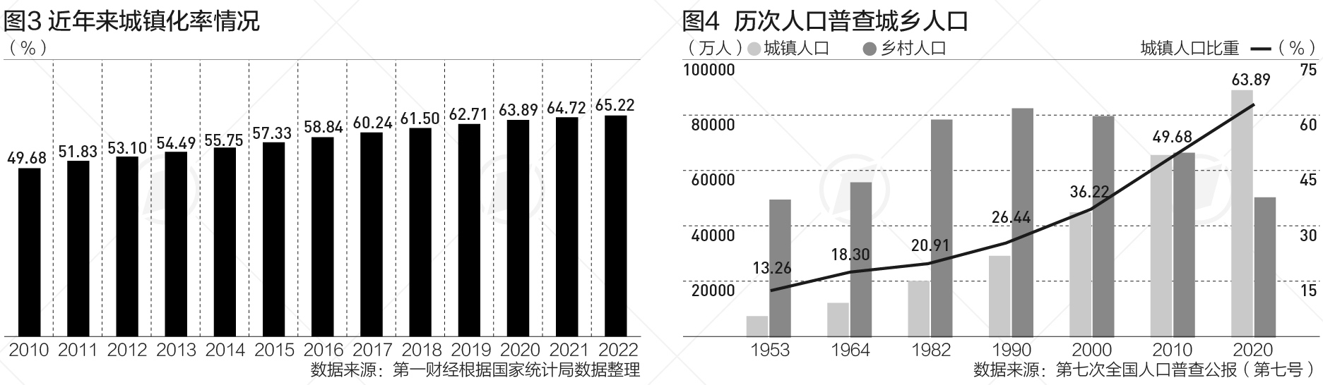 國(guó)家統(tǒng)計(jì)局?jǐn)?shù)據(jù)顯示,2022年末城鎮(zhèn)常住人口92071萬(wàn)人,比上年末增加646萬(wàn)人;鄉(xiāng)村常住人口49104萬(wàn)人,減少731萬(wàn)人;城鎮(zhèn)人口占全國(guó)人口比重(城鎮(zhèn)化率)為65.22%,比上年末提高0.50個(gè)百分點(diǎn)。