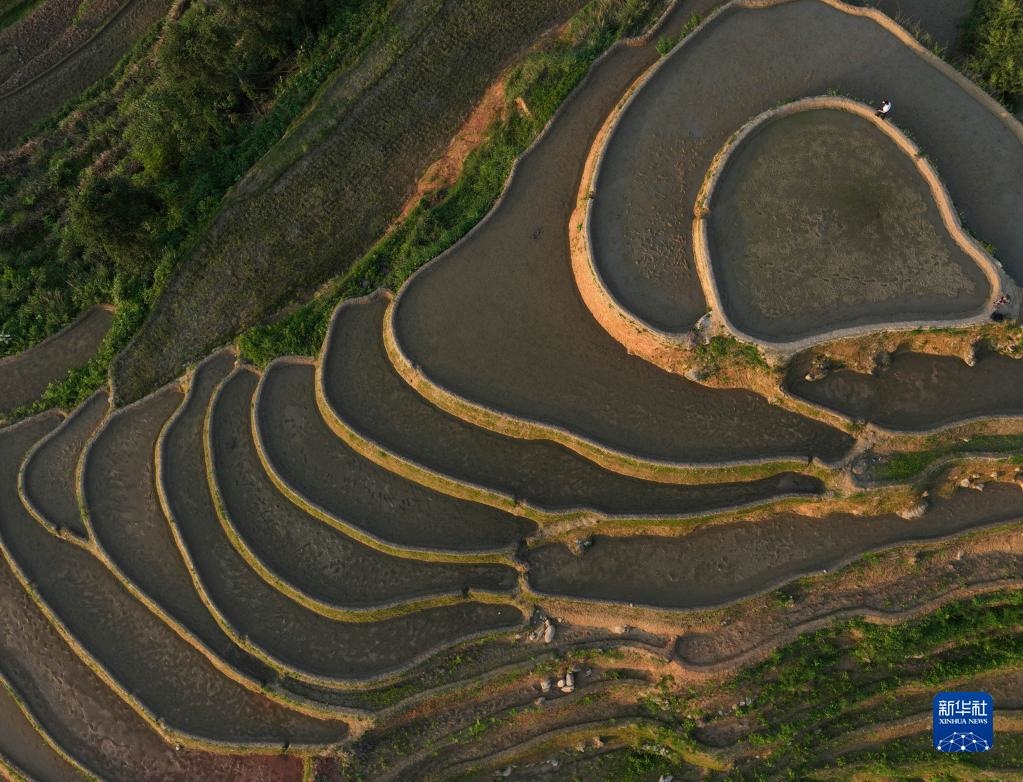 近日,湖南省婁底市新化縣紫鵲界梯田蓄水備耕,水影天光如詩(shī)如畫(huà)。新華社記者 趙眾志 攝