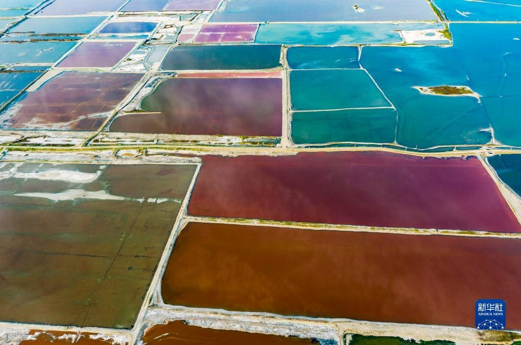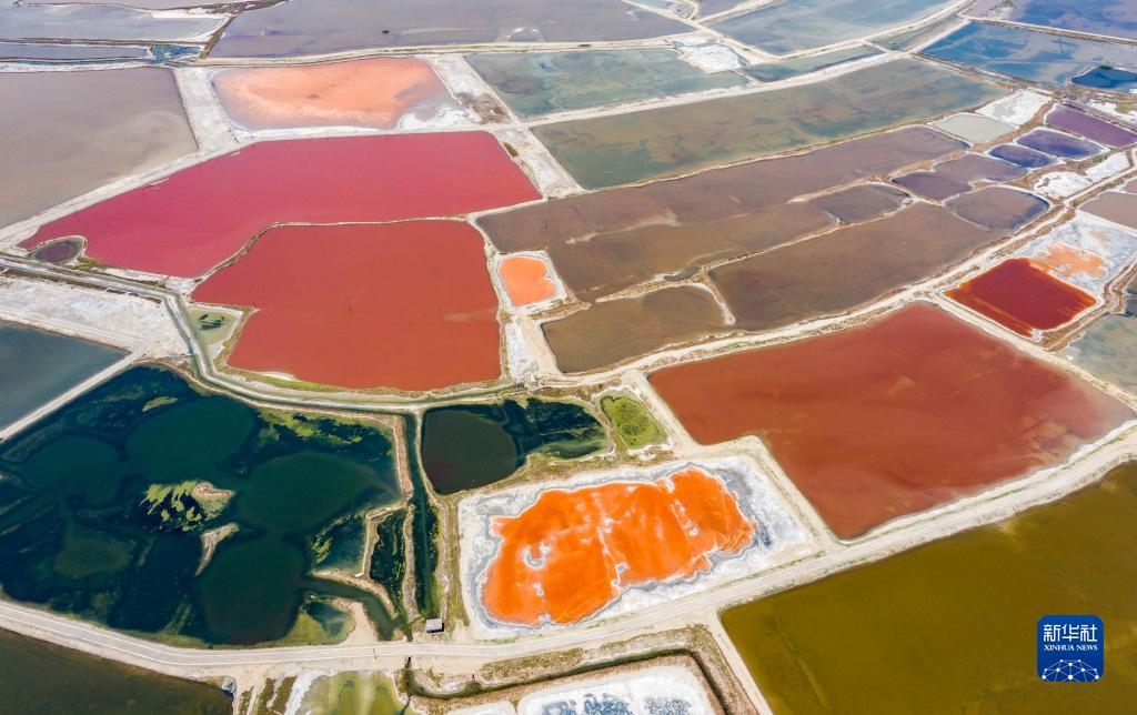 這是5月16日拍攝的運(yùn)城鹽湖一景(無人機(jī)照片)。