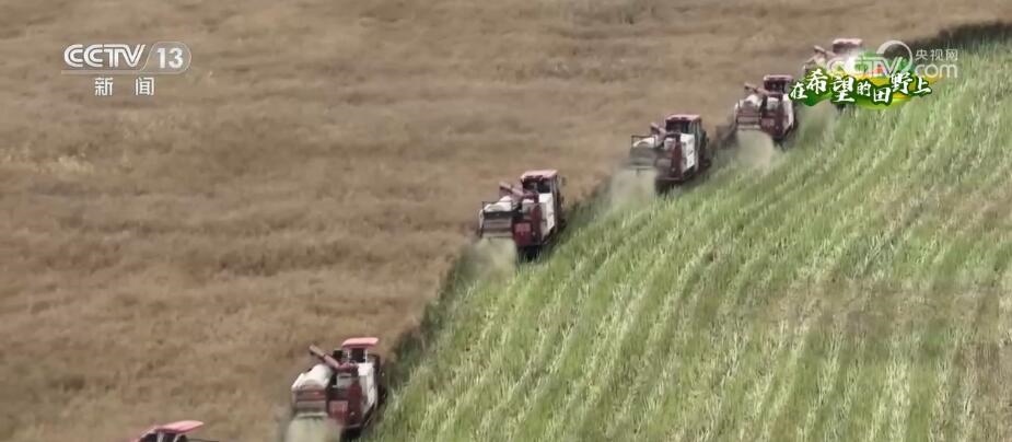 總臺央視記者 陳燁煒:我現(xiàn)在是在湖北省枝江市的一處油菜地里,在我身后,幾臺收割機(jī)正來回穿梭作業(yè)。今年這里采用的是分段式收割方法,這種方式可以大大降低機(jī)收的損失率,助力增產(chǎn)增收。
