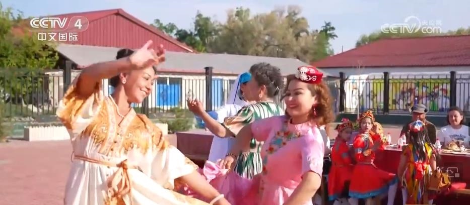 在塔城市哈爾墩社區(qū),第九屆“鄰里節(jié)百家宴”活動正在進行。各民族同胞穿上民族服飾、圍坐長桌、拉起手風琴,在音樂聲中翩翩起舞。春英是哈爾墩社區(qū)居民,是錫伯族人,她的家庭,就由多民族構(gòu)成。