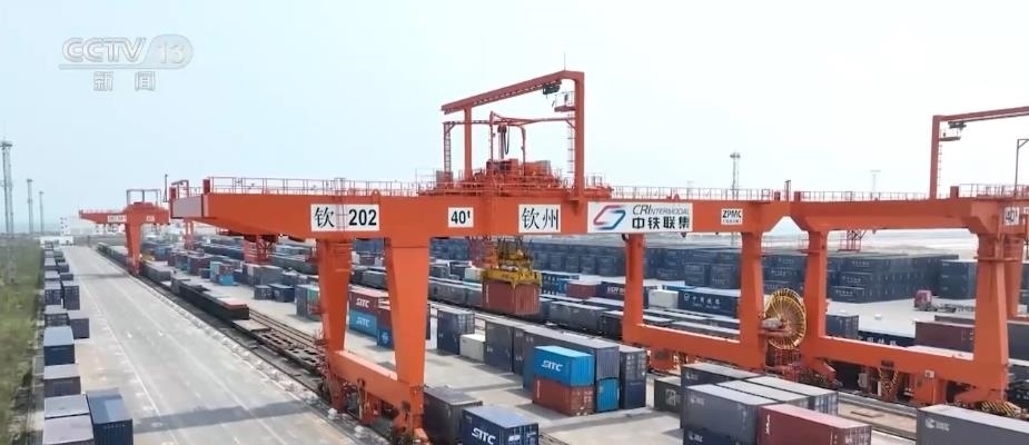 在西部陸海新通道關(guān)鍵節(jié)點(diǎn)的欽州港東站,鐵海聯(lián)運(yùn)貨物上下列車、進(jìn)出港口24小時(shí)不停歇,每天最多到發(fā)的鐵海聯(lián)運(yùn)班列有21列。截至目前,西部陸海新通道鐵海聯(lián)運(yùn)班列已輻射我國(guó)17省份、60市、115個(gè)車站,通達(dá)全球119個(gè)國(guó)家和地區(qū)的393個(gè)港口。