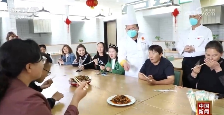 新疆塔城額敏縣居民 唐東升:主要是學炒菜技術、切配,那些師傅人很好,講了很多經(jīng)驗。上菜老是上錯,我也沒管過,我也不會,后面經(jīng)過培訓就好很多了。