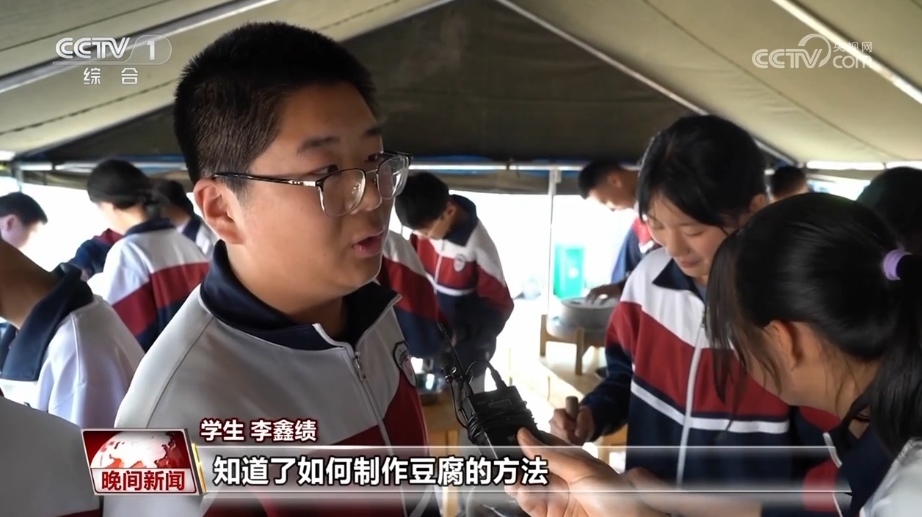 學(xué)生 李鑫績:知道了如何制作豆腐的方法,我們必須要把它傳承更大。