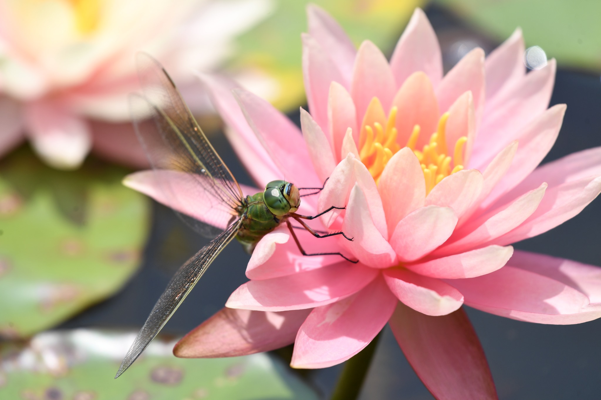 2023年5月26日,貴州仁懷,楠竹林公園的睡蓮綻放,蜻蜓花間歇息,成為一道夏日美景。視覺中國