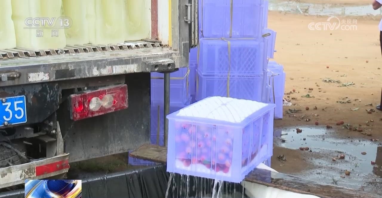 這邊采購(gòu)商前腳剛走,梁康連就來(lái)到荔枝分揀打包中心?,F(xiàn)在這里剛采摘下來(lái)的荔枝,分選打包后,要放到冰水里浸泡一個(gè)小時(shí)以上,再裝上冷鏈車(chē)物流運(yùn)輸保證荔枝的新鮮度。