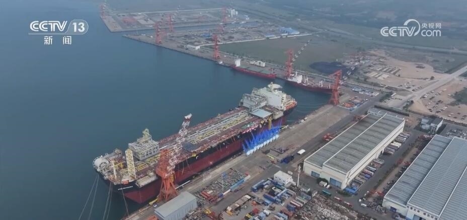 中國船舶大連造船浮式生產(chǎn)儲(chǔ)卸油船項(xiàng)目經(jīng)理 倪建偉:適用于全球多個(gè)海域的油氣開發(fā)作業(yè)。每天可以處理原油22萬桶,相當(dāng)于占地10平方公里的陸地油氣加工廠。同時(shí),設(shè)計(jì)壽命30年以上,能夠承受颶風(fēng)襲擊。