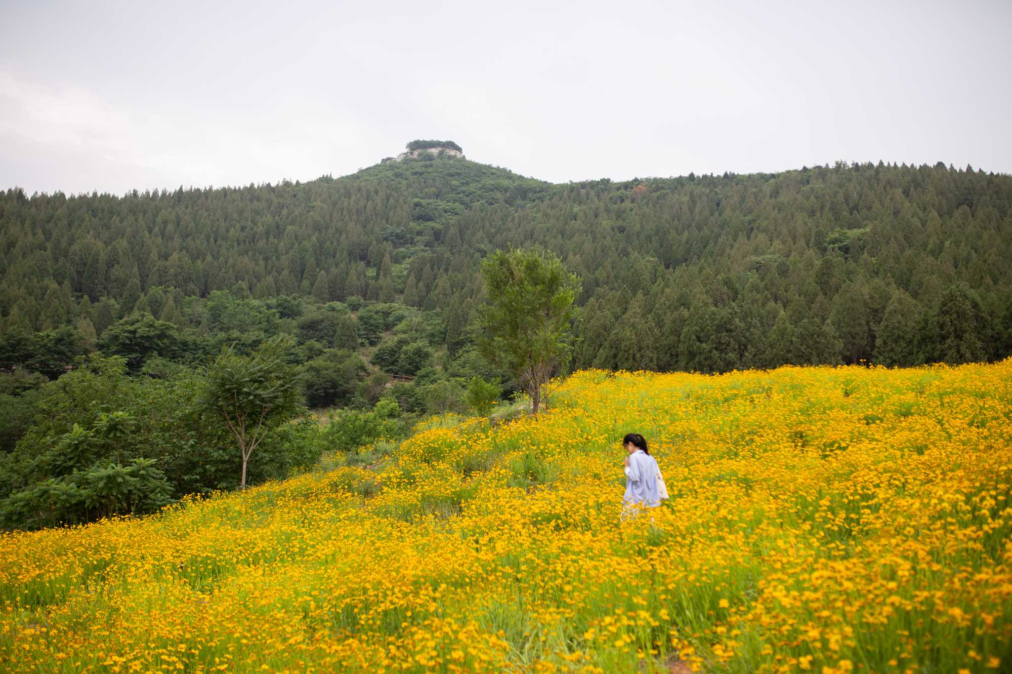 2023年5月26日,濟(jì)南蚰蜒山,山谷大片的金雞菊盛開(kāi),宛如一片黃色的花海。視覺(jué)中國(guó)