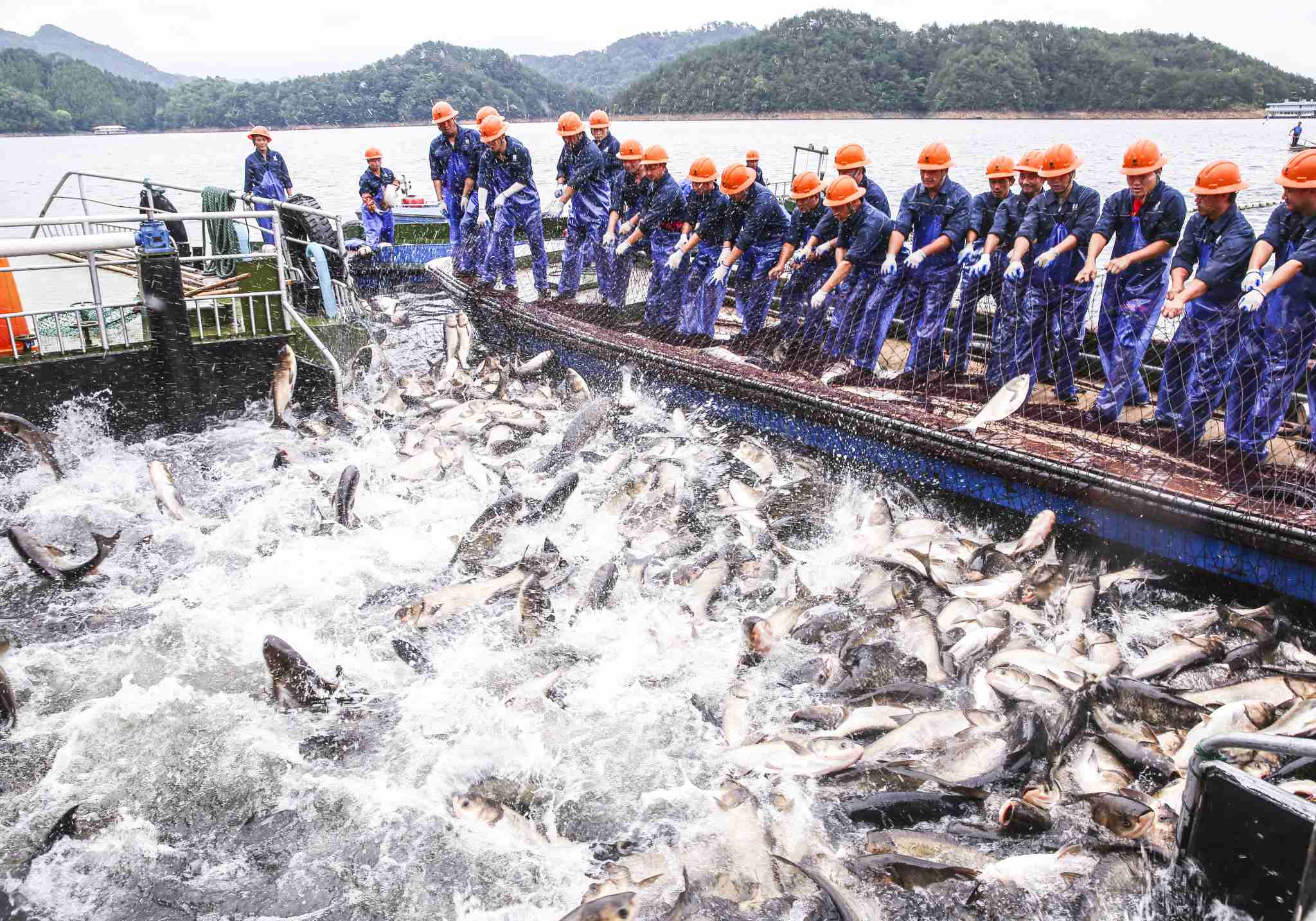 杭州:千島湖再現(xiàn)“巨網(wǎng)捕魚(yú)”景象