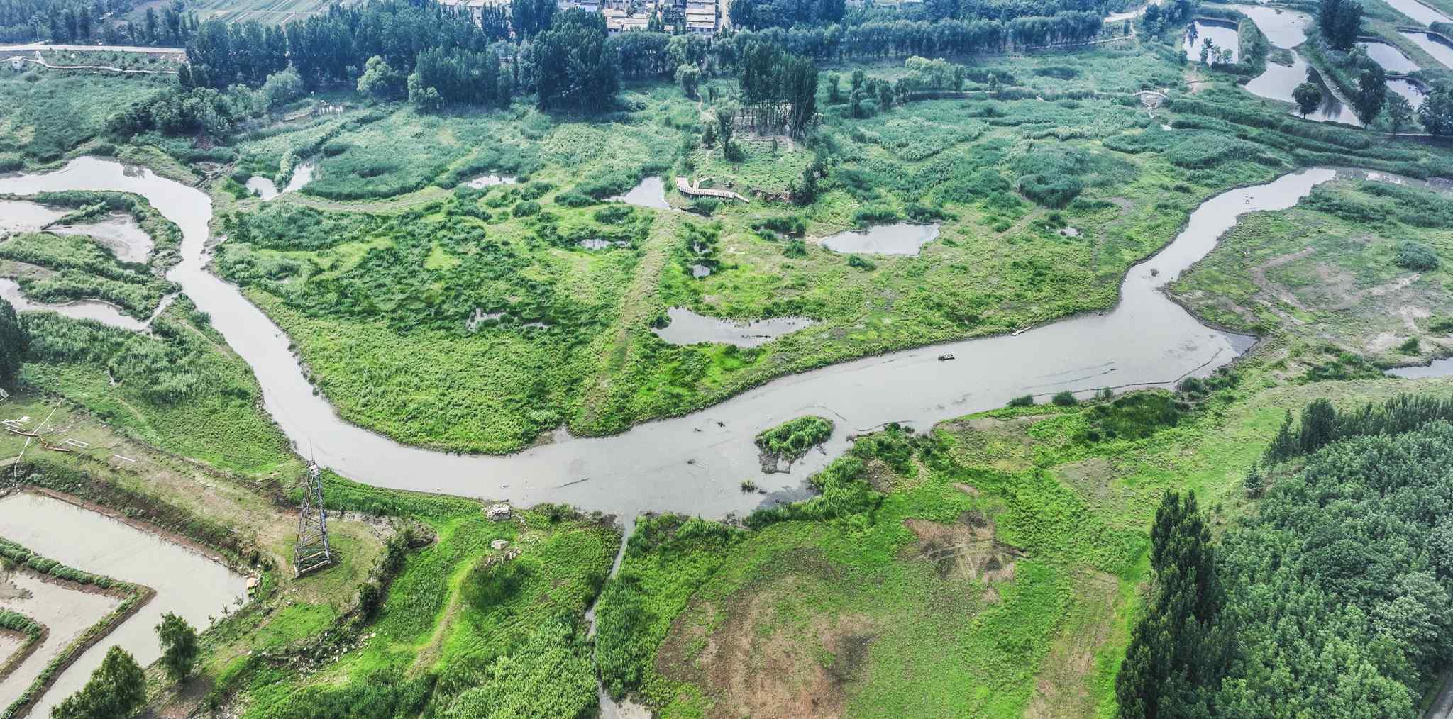 2023年5月31日,山東棗莊,薛城區(qū)蟠龍河國家濕地公園綠意盎然、流水潺潺、水鳥翩躚而至,繪就一幅美麗的生態(tài)畫卷。視覺中國