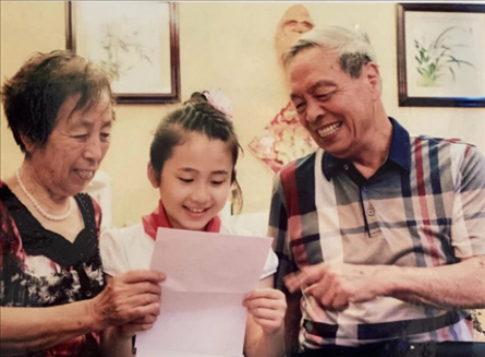 △浙江臺(tái)州市椒江區(qū)學(xué)生張婧怡與爺爺奶奶分享習(xí)近平總書記的回信。