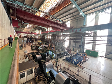 5月30日,本鋼三冷酸洗軋機(jī)聯(lián)合機(jī)組里一片繁忙。一個(gè)個(gè)幾十噸重的鋼卷整齊有序地在傳送帶上穿梭著,從上料、拆卷、拉矯、酸洗到成品卸卷……軋機(jī)段最大速度可以達(dá)到1500米/分鐘。