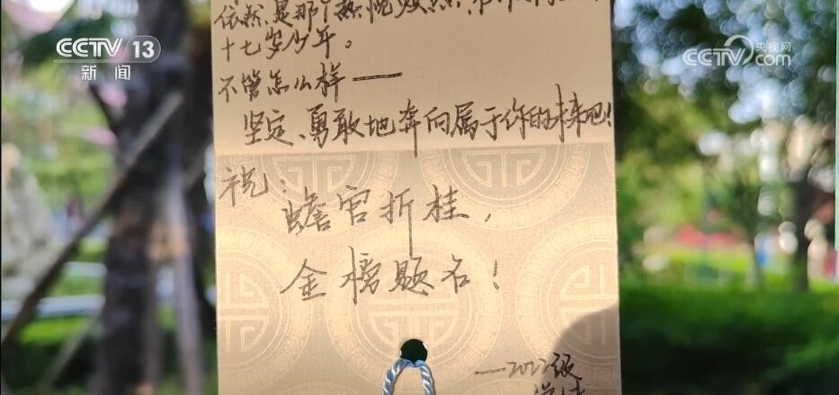 河南漯河市第四高級中學(xué)高三學(xué)生 趙晨辰:書簽里面有一句話我非常感動,“他強任他強,清風(fēng)拂山崗”。無論是順境還是逆境,都要堅持不懈,永遠不能放棄。我希望承載著這份祝福,能夠自信踏入考場,能夠書寫出我認為最好的答卷。