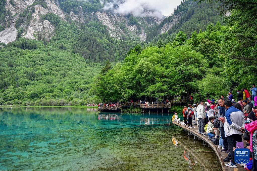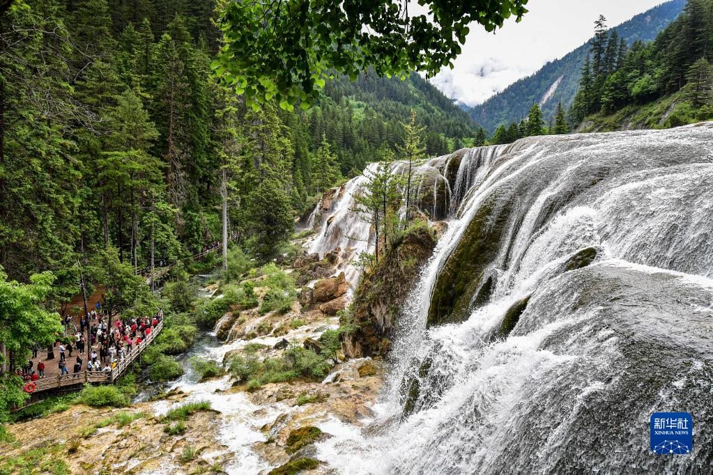 進入6月,世界自然遺產(chǎn)九寨溝景區(qū)山巒疊翠,飛瀑爭喧。截至6月8日,九寨溝景區(qū)2023年游客接待量超120萬人次。新華社記者 張超群 攝