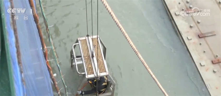 6月9日凌晨5時左右,準(zhǔn)備潛水檢查作業(yè)的4名潛水員分別從船頭船尾下水,檢查即將安裝的最后一個管節(jié)兩端是否存在異物,并在水下安裝最終接頭測控設(shè)備。