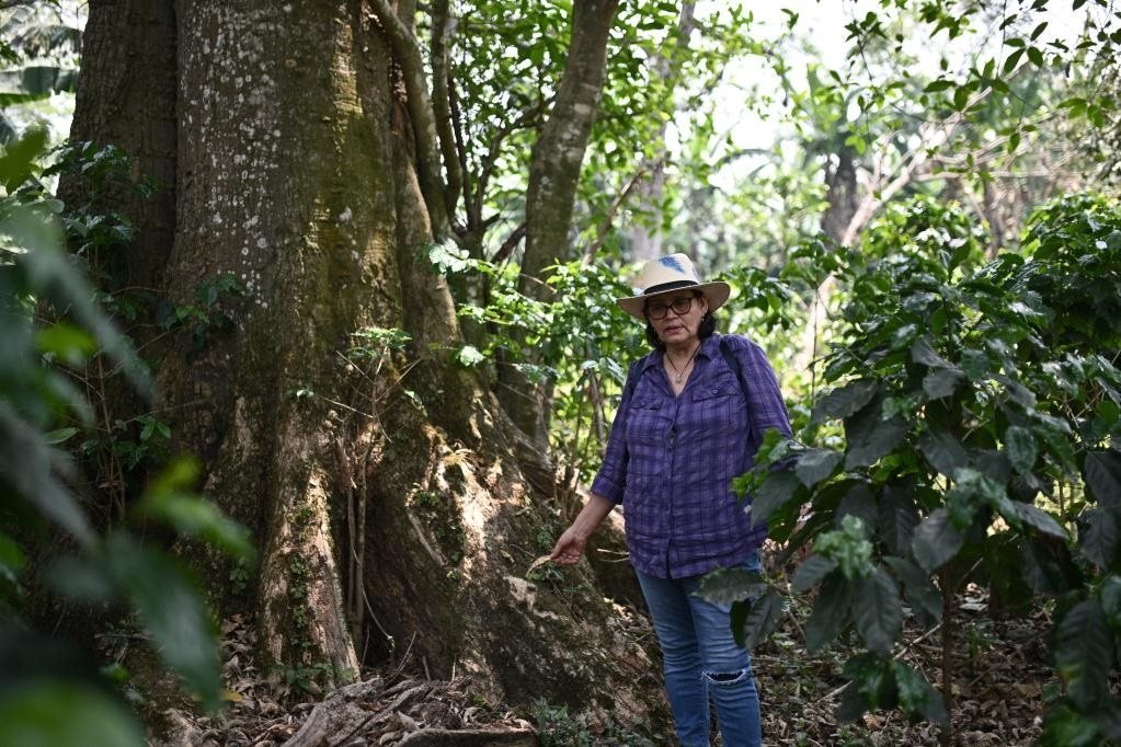 5月6日,在洪都拉斯馬爾卡拉,工人在一處咖啡種植園查看作物長(zhǎng)勢(shì)。洪都拉斯的自然條件非常適合咖啡種植,是中美洲主要咖啡出口國(guó)之一。(新華社記者辛悅衛(wèi)攝)