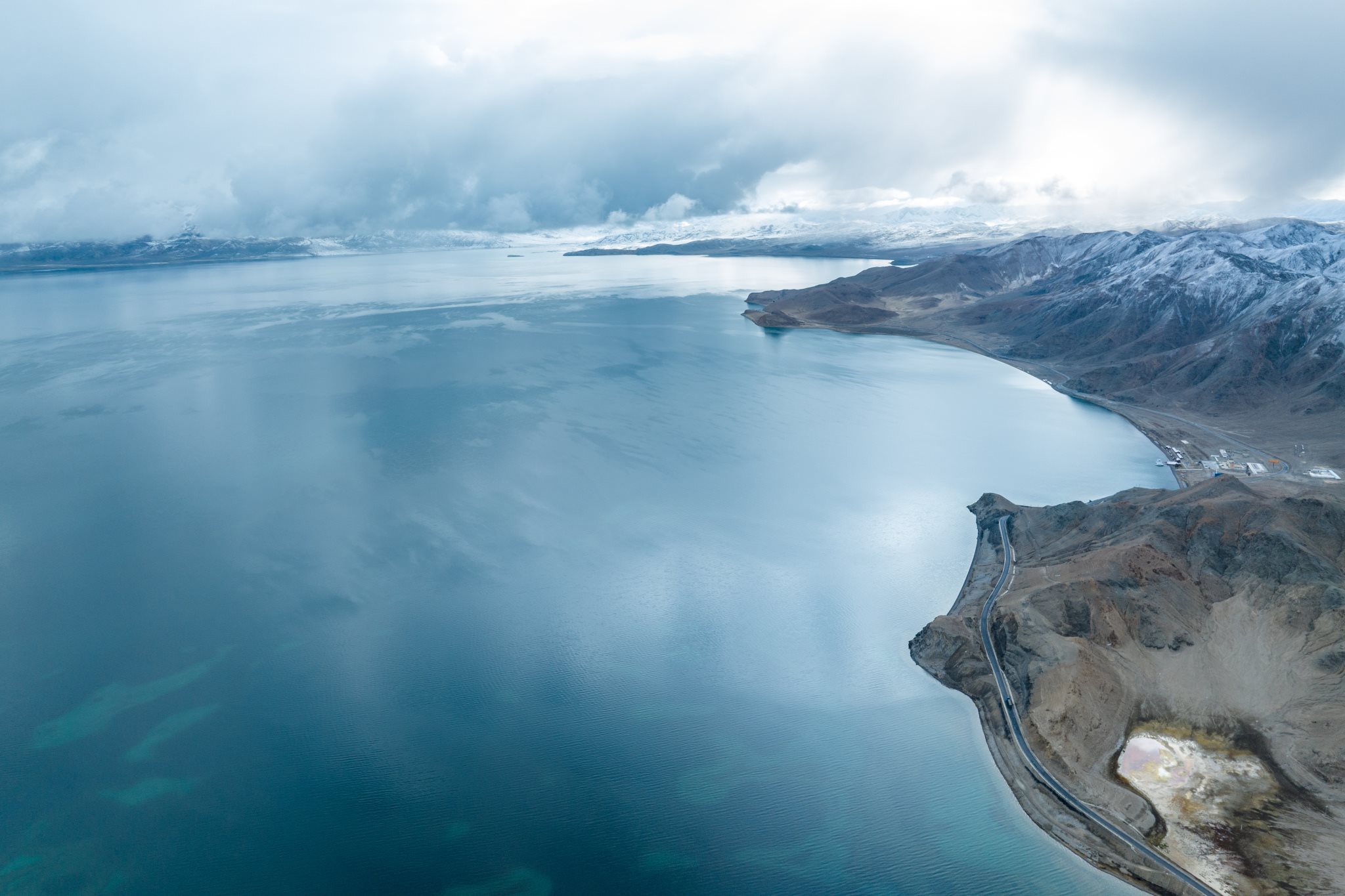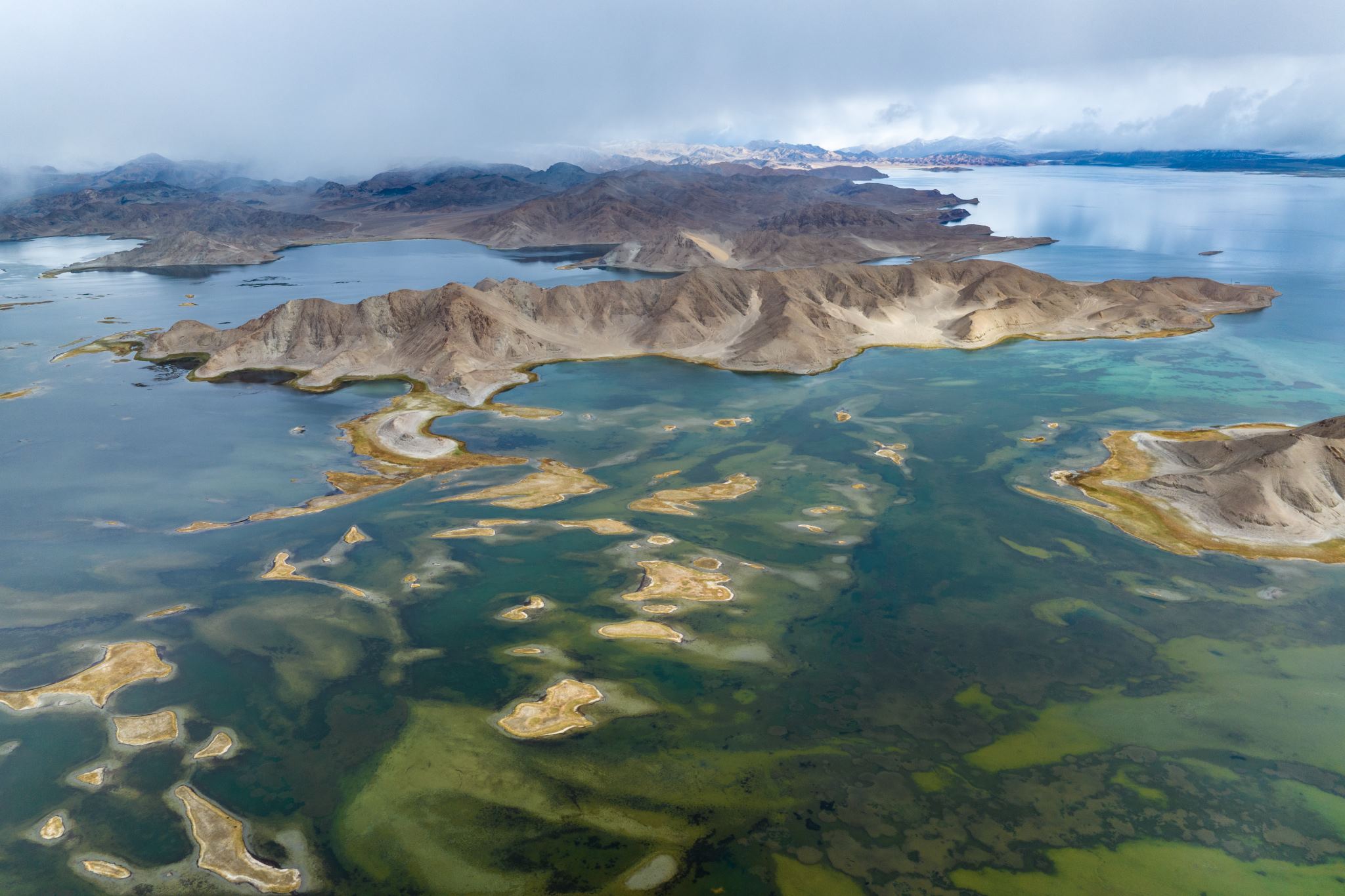 2023年6月6日,西藏阿里,日土縣班公湖,湛藍(lán)的湖水、潔白的雪山、奇特的沿湖景觀,構(gòu)成一幅夏日醉美畫卷。視覺中國