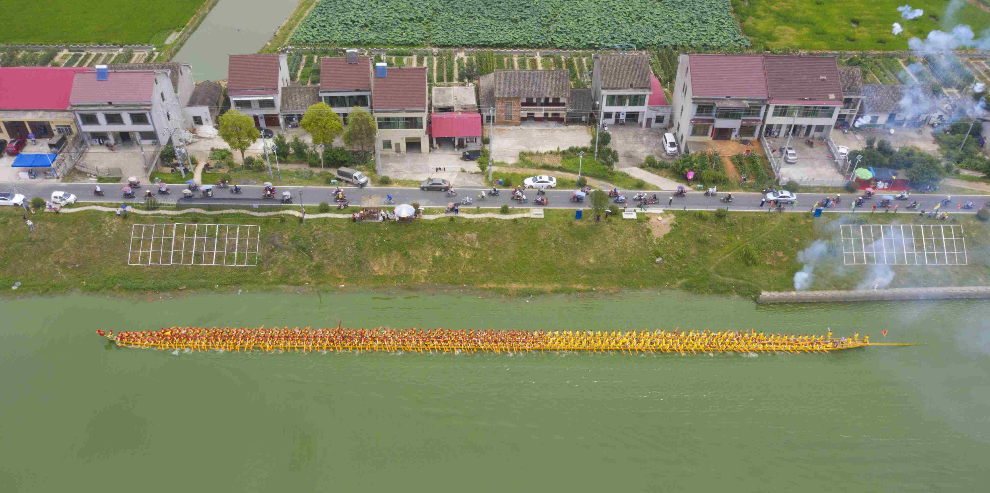 2023年6月12日,由北岸新村打造的長(zhǎng)達(dá)99.9米的巨型雙橈龍舟在湖南省益陽(yáng)市赫山區(qū)蘭溪鎮(zhèn)舉行“百米龍舟”登江儀式。
